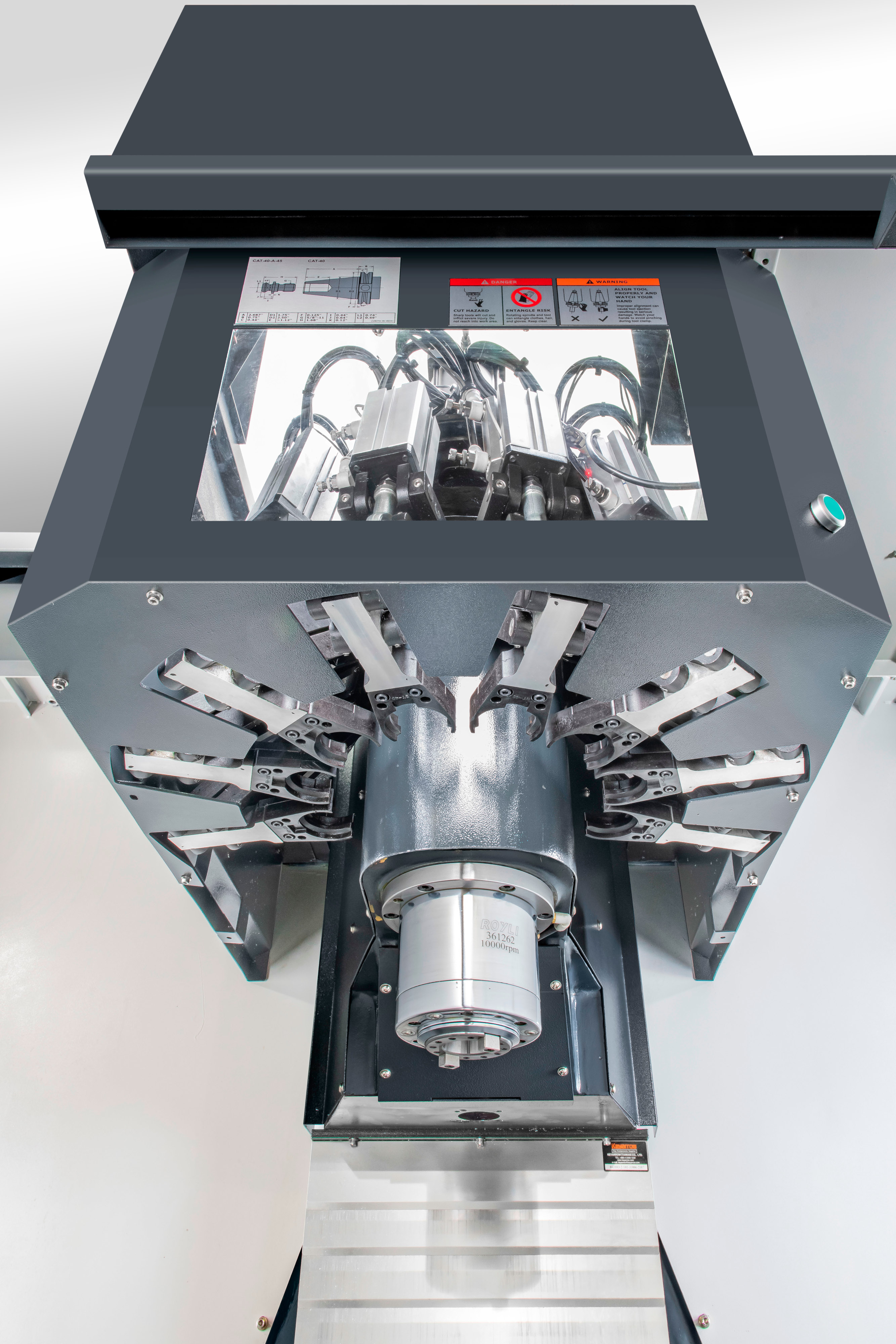Fraiseuse CNC EZLearn par Dynapath Modèle: DMC 845 Dimensions de la table: 850 x 420 mm (33.5" x 16.5") Courses; X: 800mm (31.4"), Y: 400mm 15.7"), Z: 500 (19.6") Broche: CAT40, 50-8000 tr/min Entraînement par courroie, Puissance de 7HP Magasin de 8 outils indépendants DynaPath WinDelta CNC System SYSTEM 15.6" Touchscreen LCD D11 Console MPG Handwheel + MPG Run Conversational + DXF + ISO/EIA G-Code Rigid Tap + High Speed Machining + Networking Including options: 12 000 RPM_7.5 kW_DD_Oil Chiller Swarf Auger Kit with Cart Upgrade to Through Spindle Coolant Garantie de 1 an sur pièces & main d'œuvre